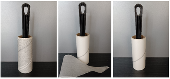 A lint roller's design enables fast 360 degree rotation, which facilitates the easy removal of unsightly fiber (often animal hair). Lint rollers can be purchased in many sizes, from pet stores, supermarkets and online.