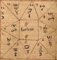 Symbols for the classical planets, zodiac signs, aspects, lots, and the lunar nodes appear in the medieval Byzantine codices in which many ancient horoscopes were preserved.[1] In the original papyri of these Greek horoscopes, there was a circle with the glyph representing shine (