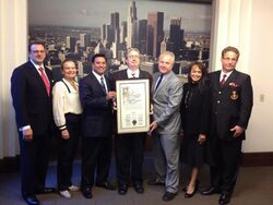 In recognition of its efforts to engage the local community in fostering civic pride, the Los Angeles City Council officially recognized the Queen of Angels Foundation in a formal commendation awarded in August 2012.