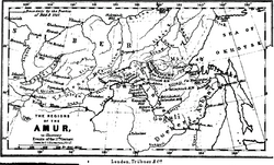 The southeast corner of Siberia south of the Stanovoy Range was twice contested between Russia and China. Hydrologically, the Stanovoy Range separates the rivers that flow north into the Arctic from those that flow south into the Amur River. Ecologically, the area is the southeastern edge of the Siberian boreal forest with some areas good for agriculture. Socially and politically, from about 600 AD, it was the northern fringe of the Chinese-Manchu world. Various Chinese dynasties would claim sovereignty, build forts and collect tribute when they were strong enough. The Ming dynasty Nurgan Regional Military Commission[4] built a fort on the Northern bank of the Amur at Aigun,Cite error: Closing </ref> missing for <ref> tag led by the Solon-Evenk leader Bombogor (Chinese: 博木博果爾 or 博穆博果爾 pinyin:Bomboguoer) while the second native leader Bardači (Chinese: 巴爾達齊 or 巴爾達奇 Bā'ěrdáqí) kept neutral.