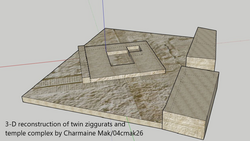 The twin ziggurats were built of small plano-convex bricks in a herringbone fashion on the summit of Tell Ingharra. The larger one is located on the south-west side of the temple and the smaller one on the south-east side.[36] The excavation report mainly focused on the larger ziggurat while there had been only one report on the smaller one by Mackay. Based on the findings from the larger ziggurat, it is suggested that the structures were built at the end of the Early Dynastic IIIa period to commemorate the city.[49] The fascination of the ziggurats was interesting to the excavators as it was the only Early Dynastic structure that was not destroyed or obscured by later reconstructions, which was why it provided valuable evidence of that time period.[36]