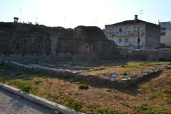 Komotini has existed as a settlement since the 2nd century AD. That is confirmed by archaeological finds of that era up until the 4th century. It is also confirmed by an inscription on the ruins of the 4th-century Byzantine wall, that are visible at various sites in the city, which reads "Theodosiou Ktisma" = Building of Theodosius. The inscription was discovered by the Komotini-born Prof. Stilponas Kyriakidis and the then mayor Sofoklis Komninos. It is said that the settlement originates from the 5th century and is linked to the daughter of the painter Parrasios from Maroneia. During the Roman age it was one of several fortresses along the Via Egnatia highway which existed in the Thrace area. Probably it is to be identified with the Roman station Breierophara (a Thracian toponym from bre (=fortress) + iero (= holy) + phara=para (=pass).[2] The most important city of that period was neighbouring Maximianopolis, former Thracian Porsulis or Paesoulae, which was renamed to Mosynopolis in the 9th century. Komotini was a Via Egnatia hub on its northern route through the Nymphaea Pass which led to the Ardas Valley, Philippopolis (modern Plovdiv) and Byzantine Berroe (modern Stara Zagora).