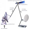 Programming for satellite television channels comes from multiple sources and may include live studio feeds.[26] The broadcast center assembles and packages programming into channels for transmission and, where necessary, encrypts the channels. The signal is then sent to the uplink[27] where it is transmitted to the satellite. With some broadcast centers, the studios, administration and up-link are all part of the same campus.[28] The satellite then translates and broadcasts the channels.[29]