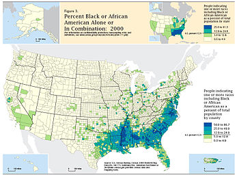 Black percentage of the population, US Census 2000.