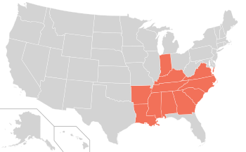 The stroke belt is typically defined to include the states of Alabama, Arkansas, Georgia, Kentucky, Louisiana, Mississippi, North Carolina, South Carolina, Tennessee, and Virginia.[2]