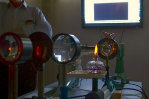 In 1756 Thomas Melvill observed the emission of distinct patterns of colour when salts were added to alcohol flames.[2] By 1785 James Gregory discovered the principles of diffraction grating and American astronomer David Rittenhouse made the first engineered diffraction grating.[3][4] In 1821 Joseph von Fraunhofer solidified this significant experimental leap of replacing a prism as the source of wavelength dispersion improving the spectral resolution and allowing for the dispersed wavelengths to be quantified.[5]