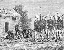 Resistance continued to French rule, most notably under the Cần Vương ("Aid the King") movement, which was only crushed six years later.[43] During the uprising, they massacred tens of thousands of Vietnamese Christian converts in retaliation for perceived collaboration with the foreign occupier.[44]