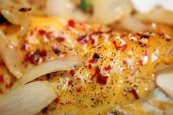 When fresh, the flesh of haddock is clean and white and its cooking is often similar to that of cod.[5] A fresh haddock fillet will be firm and translucent and hold together well but less fresh fillets will become nearly opaque.[30] Young, fresh haddock and cod fillets are often sold as scrod in Boston, Massachusetts;[31] this refers to the size of the fish which have a variety of sizes, i.e., scrod, markets, and cows.[32] Haddock is the predominant fish of choice in Scotland in a fish supper.[33] It is also the main ingredient of Norwegian fishballs (fiskeboller).[34] Unlike cod, haddock is not an appropriate fish for salting and preservation is more commonly effected by drying and smoking.[35]