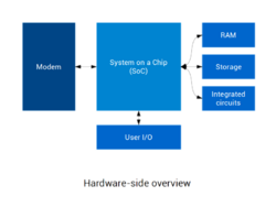 A typical smartphone contains a number of metal–oxide–semiconductor (MOS) integrated circuit (IC) chips,[1] which in turn contain billions of tiny MOS field-effect transistors (MOSFETs).[2] A typical smartphone contains the following MOS IC chips.[1]