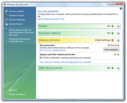WSC in Windows Vista monitors new criteria, such as anti-spyware software, User Account Control, and Internet Explorer security settings. It can also display logos of third-party products that have been registered with the Security Center.