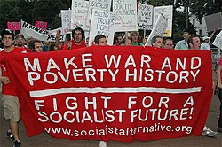 The most enduring of several Trotskyist parties in Britain has been the Socialist Workers Party, formerly the International Socialists (IS). Its founder Tony Cliff rejected the orthodox Trotskyist view of the USSR as a "deformed worker's state." Communist-party regimes were "state capitalist."[102] The SWP has founded several front organisations through which they have sought to exert influence over the broader left, such as the Anti-Nazi League in the late 1970s and the Stop the War Coalition in 2001.[103] It also allied with George Galloway and Respect, whose dissolution in 2007 caused an internal crisis in the SWP. A more serious internal crisis, leading to a significant decline in the party's membership, emerged in 2013. Allegations of rape and sexual assault made against a leading party member[104] developed into a dispute over the practice of democratic centralism (defended by the party's international secretary Alex Callinicos).[105]