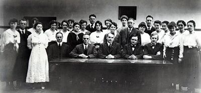 Founded in 1916 as the Eau Claire State Normal School, the university originally offered one-, two- and three-year teachers' courses and a principals' course.[11] At the school's founding ceremony Governor Emanuel L. Philipp said the university was founded "in order that you, the sons and daughters of the commonwealth, might have better educational service." He went on to say the University would "go on benefiting the state of Wisconsin as long as the walls of this massive building (Schofield Hall) last."[12]