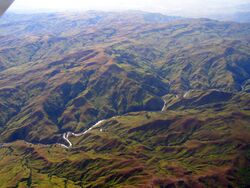 According to a UN climate report, the Himalayan glaciers that are the sources of Asia's biggest rivers – Ganges, Indus, Brahmaputra, Yangtze, Mekong, Salween and Yellow – could disappear by 2035 as temperatures rise.[63] It was later revealed that the source used by the UN climate report actually stated 2350, not 2035.[64] Approximately 2.4 billion people live in the drainage basin of the Himalayan rivers.[65] India, China, Pakistan, Bangladesh, Nepal and Myanmar could experience floods followed by droughts in coming decades. In India alone, the Ganges provides water for drinking and farming for more than 500 million people.[66][67][68] The west coast of North America, which gets much of its water from glaciers in mountain ranges such as the Rocky Mountains and Sierra Nevada, also would be affected.[69][70]
