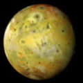 Thor is an active volcano on Jupiter's moon Io. It is located on Io's anti-Jupiter hemisphere at [ ⚑ ] : 39°09′N 133°08′W / 39.15°N 133.14°W[2]. A major eruption with high thermal emission and a large, volcanic plume was observed during a Galileo flyby on August 6, 2001, when the spacecraft flew through the outer portions of the plume allowing for direct sampling. The eruption continued into Galileo's next flyby in October 2001.[1][3] As seen during high-resolution images taken during the eruption, Thor consists of a series of dark lava flows emanating from a set of nearby volcanic depressions.[1] Before the eruption, the area consisted of red-brown plains, composed of irradiated sulfur, typical of Io's mid- to high-northern latitudes and a set of yellow flows, possibly consisting of sulfur or silicate flows covered by diffuse sulfur deposits.[4] During the New Horizons encounter in February 2007, Thor was still active, with the spacecraft observing thermal emission in the near-infrared and a volcanic plume at the volcano.[5]