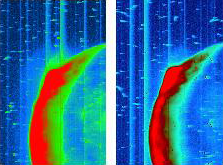 NIMS also observed Thor at high resolution. It found Thor was still vigorously erupting, though the power output was lower than it was in August 2001.[3] The most intense part of the eruption (in terms of total power output) was centered over the large eastern lava flow observed by the camera team. NIMS also found thermal emission from several nearby paterae, where no volcanic activity had previously been observed. This activity coincided with a darkening of the floors of these volcanoes, as a result of fresh lava flows or the sublimation of sulfur deposits seen by the camera on Galileo. Activity at nearby volcanoes suggested that the magma plumbing system below Thor extended to these features as well, producing renewed volcanic activity on a regional scale.[3]