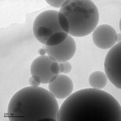 Silica fume is an ultrafine material with spherical particles less than 1 μm in diameter, the average being about 0.15 μm. This makes it approximately 100 times smaller than the average cement particle.[1] The bulk density of silica fume depends on the degree of densification in the silo and varies from 130 (undensified) to 600 kg/m3. The specific gravity of silica fume is generally in the range of 2.2 to 2.3. The specific surface area of silica fume can be measured with the BET method or nitrogen adsorption method. It typically ranges from 15,000 to 30,000 m2/kg.[2]