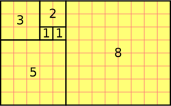 The Fibonacci numbers comprise the integer sequence whose elements are the sum of the previous two elements. The first two elements are either 0 and 1 or 1 and 1 so that the sequence is (0, 1, 1, 2, 3, 5, 8, 13, 21, 34, ...).[1]