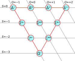 The interaction of these particles by scattering and decay provided a key to new fundamental quantum theories. Murray Gell-Mann and Yuval Ne'eman brought some order to mesons and baryons, the most numerous classes of particles, by classifying them according to certain qualities. It began with what Gell-Mann referred to as the "Eightfold Way", but proceeding into several different "octets" and "decuplets" which could predict new particles, most famously the Omega-, which was detected at Brookhaven National Laboratory in 1964, and which gave rise to the quark model of hadron composition. While the quark model at first seemed inadequate to describe strong nuclear forces, allowing the temporary rise of competing theories such as the S-matrix theory, the establishment of quantum chromodynamics in the 1970s finalized a set of fundamental and exchange particles (Kragh 1999). It postulated the fundamental strong interaction, experienced by quarks and mediated by gluons. These particles were proposed as a building material for hadrons (see hadronization). This theory is unusual because individual (free) quarks cannot be observed (see color confinement), unlike the situation with composite atoms where electrons and nuclei can be isolated by transferring ionization energy to the atom.