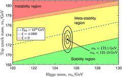 ↑ 15.015.115.215.315.415.5Alekhin, S.; Djouadi, A.; Moch, S.; Hoecker, A.; Riotto, A. (2012-08-13). "The top quark and Higgs boson masses and the stability of the electroweak vacuum". Physics Letters B716 (1): 214–219. doi:10.1016/j.physletb.2012.08.024. Bibcode: 2012PhLB..716..214A.