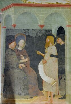 The exact year of the marriage of Herod Antipas and Herodias is subject to debate among scholars.[10] While some scholars place the year of the marriage in the range AD 27-31, others have approximated a date as late as AD 35, although such a late date has much less support.[10] In his analysis of Herod's life, Harold Hoehner estimates that John the Baptist's imprisonment probably occurred around AD 30-31.[75] The International Standard Bible Encyclopedia estimates the death of the Baptist to have occurred about AD 31-32.[11]