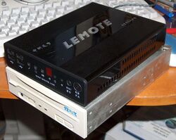 Lemote's Fulong MiniPC on top of a CD-ROM drive as reference