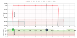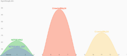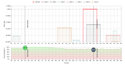 Graphical representation of Wi-Fi application specific (UDP) performance envelope 2.4 GHz band, with 802.11n with 40 MHz |