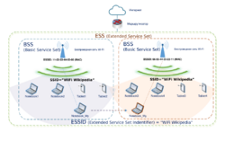 An Extended Service Set may be formed by deploying multiple access points that are configured with the same SSID and security settings. Wi-Fi client devices typically connect to the access point that can provide the strongest signal within that service set.[99]