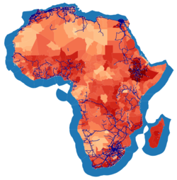 The PyPSA meets Earth initiative arose in October 2022 as a means of gathering together several historically disjoint PyPSA applications.[228] One key strand is the PyPSA‑Africa project (previously PyPSA-meets-Africa), launched some months earlier to provide a single model and dataset spanning the African continent.[229][230] A July 2022 webinar co‑hosted by CPEEL, Nigeria advanced this agenda.[231][232] The first research paper, released in 2022, examines various pathways for Africa to be net zero by 2060 — with solar power and battery storage expected to be the predominant technologies.[215]
