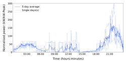The RAMP software can then generate synthetic data wherever metered data does not exist, such as when designing systems in remote areas [245] or when looking forward to future electric-vehicle fleets.[246] The limited data requirements also allow for a greater flexibility in scenario selection and development than similar but more data-intensive characterizations.[247]