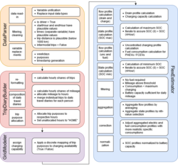 Venco.py has been applied to various scenarios in Germany in 2030 using a projected 9 million BEVs in service and an annual fleet power consumption of 27 TWh. Simulations show that owner decisions are indeed significant and that some system design variables have more influence than others. For instance, aggregate fleet capacity and the availability of fast charging facilities appear to strongly impact the likely system contribution. Further work is needed to assess the influence of more resolved weather and demand patterns.[249] The mathematical formulation is available.[250] Venco.py builds on an earlier spreadsheet prototype.[251]