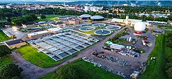 Agricultural wastewater treatment is treatment and disposal of liquid animal waste, pesticide residues etc. from agriculture.[3] Concentrated animal feeding operations (CAFOs) are a large contributor to water contamination with animal waste.[4] A possible treatment to contaminated agricultural wastewater is extending rainwater drainage systems. Extending these systems allows room for water cleaning and collecting systems to be implemented. Another solution is reusing already treated wastewater from treatment plants. This diminishes any risk of the water being contaminated.[5]