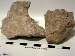 The most recent eruptive episode on the Mono Craters occurred sometime between the years 1325 and 1365.[31][32] A vertical sheet-like mass of magma, called a dike, caused groundwater to explosively flash to steam, creating a line of vents 4 miles (6 km) long.[33]:67 A mix of ash and pulverized rock, called tephra, covered about 3,000 square miles (8,000 km2) of the Mono Lake region. The tephra were carried by the wind and deposited in a layer 8 inches (20 cm) deep 20 miles (32 km) from the vents and 2 inches (5 cm) deep 50 miles (80 km) away.[33]:67