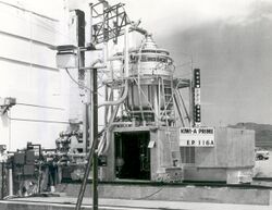 SNAP-10A Space Nuclear Power Plant, shown here in tests on the Earth, launched into orbit in the 1960s.