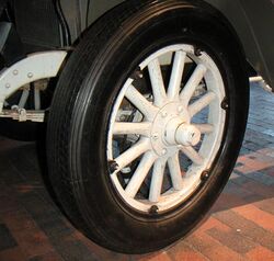 The original type of spoked wheel with wooden spokes was used for horse-drawn carriages and wagons. In early motor cars, wooden spoked wheels of the artillery type were normally used.