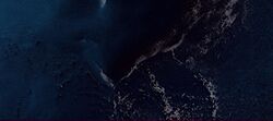 The processes of how the crater came to have the water ice mound in the first place is thought to be a result of atmospheric deposition of water vapor at the crater's surface.[18][4][20][21] Seasonally, a polar hood with atmospheric water is incorporated into the frost cap of the northern Martian pole, water comes loose as the cap retreats. A ring of water frost forms as the cap retreats, and sweeps over craters in the process.[11] This process was thought to be more likely than the idea of Louth being an outlier from a larger polar cap,[20] or water deposited by aeolian processes from a feature dubbed "Mrs. Chippy's Ring", which was too far from Louth to likely be the source.[4] Follow up studies in 2021 suggested a similar conclusion, with additional findings that the ice mound casts a shadow in a process dubbed "self-shadowing", which either prevented further ablation or promoted the precipitation of water ice.[21] Other theories proposed for the formation of the central mound include: upwelling from an underground Martian aquifer, akin to the formation of pingos on Earth,[22] and melting of surface ice due to impact-induced hydrothermal activity.[20][11][13]