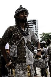 The La Sape subculture, characterized by extravagant and dapper fashion choices, has become an emblem of style, self-expression, and identity for the sapeurs of Kinshasa. It has gained international recognition through the lens of well-known photographers such as Daniele Tamagni. Tamagni's book Gentlemen of Bacongo (2009) showcases the impeccable style and distinct personalities of Kinshasa's sapeurs, accentuating their taste in tailored suits, bold hues, and eye-catching accessories.[134][135] The city serves as the epicenter of La Sape, with various neighborhoods, communes and districts hosting events like le concours or la fête where sapeurs can display their style. La Sape has also inspired popular music and cultural expressions in Kinshasa, with sapeurs often featured in Congolese music videos as symbols of refinement and sophistication. Musicians such as Papa Wemba have embraced La Sape as an essential part of their artistic identity.[134][136][137]