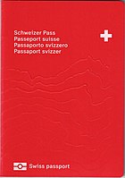 Swiss passports are red in colour, with the words Schweizer Pass (German), Passeport suisse (French), Passaporto svizzero (Italian), Passaport svizzer (Romansh) and Swiss passport (English) in the top right corner with the Swiss equilateral white cross below. The standard biometric symbol is placed on the bottom right hand side.