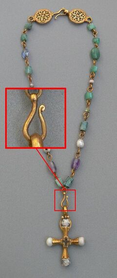 A bail (also spelled "bale") is a component of certain types of jewelry, mostly necklaces, that is used to attach a pendant or stone.[1]