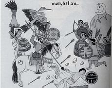 Spanish conquistadors with their Tlaxcallan allies fighting against the Otomies of Metztitlan in present-day Mexico, a 16th-century codex