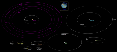 | 122 | Trans-Neptunian objects | go to list | Two systems with two satellites: 47171 Lempo and 136108 Haumea; one system with five satellites: 134340 Pluto.[1][21] |