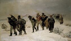 | During Napoleon Bonaparte's retreat from Russia in the winter of 1812, many troops died from hypothermia.[1] | |