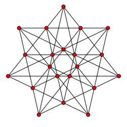 The Grünbaum–Rigby configuration was known to Felix Klein, William Burnside, and H. S. M. Coxeter.[1] Its original description by Klein in 1879 marked the first appearance in the mathematical literature of a 4-configuration, a system of points and lines with four points per line and four lines per point.[2] In Klein's description, these points and lines belong to the complex projective plane, a space whose coordinates are complex numbers rather than the real-number coordinates of the Euclidean plane.