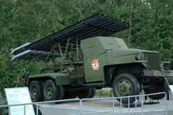![]() BM-13 Katyusha multiple rocket launcher, based on a ZIS-6 truck, Museum of The History of Ukraine in World War II, Kiev (close-up). | |