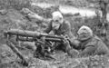 The water jacket would be filled with about 4 litres (1.1 US gal) of water from a small hole at the rear end, sealed by a cap. The evaporative cooling system, though heavy, was very effective and enabled the gun to keep firing far longer than its air-cooled rival weapons. If water was unavailable, soldiers were known to resort to using their urine.[41] It was sometimes claimed that crews would fire off a few rounds simply to heat their gun's cooling water to make tea, despite the resulting brew tasting of machine-oil.[42] In extremely cold weather, the cooling water could freeze and damage the gun. This problem was addressed using an insulating water jacket cover, introduced in 1918 but still in use during the Korean War. Some crews added vehicle antifreeze, others drained the water jacket, or simply fired a few rounds periodically to keep the water from freezing.[43]