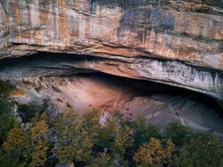 The majority of sites where P. onca mesembrina has been found in Argentina and Chile are very open and arid, contrasting to the lush rainforest habitats of modern jaguars.[25][26] This conclusion is backed by their diets, with P. onca mesembrina hunting grazing animals[20] whereas living jaguars prefer browsers like tapirs, anteaters, and peccaries.[27] Fossils of P. onca mesembrina have been reported from eight sites according to Chimento et al (2017) and Paunero et al (2017), all of which are in southern Argentina and Chile.[28][12][29] Cueva del Milodon is the southernmost site known to be occupied by jaguars. This region is extremely cold, with temperatures dropping as low as −16 °C (3 °F).[30]
