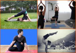 The asanas discussed in different Hatha yoga texts vary significantly.[66] Unlike ancient yoga texts of Buddhism, Hinduism and Jainism, it is the Hatha yoga texts that provide step by step methodology on how to enter into an asana. The Hindu text Gheranda samhita, for example, in section 2.8 describes the padmasana for meditation.[67] Most asanas are inspired by nature, such as a form of union with symmetric, harmonious flowing shapes of animals, birds or plants.[68]