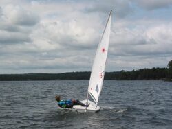 The Laser is designed to be sailed single-handed although class rules permit two sailors.[7]