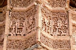 In 1018, he laid waste the city of Mathura, which was "ruthlessly sacked, ravaged, desecrated and destroyed".[30][31] According to Muhammad Qasim Hindu Shah, writing an "History of Hindustan" in the 16th-17th century, the city of Mathura was the richest in India. When it was attacked by Mahmud of Ghazni, "all the idols" were burnt and destroyed during a period of twenty days, gold and silver was smelted for booty, and the city was burnt down.[32] In 1018 Mahmud also captured Kanauj, the capital of the Gurjara-Pratiharas, and then confronted the Chandelas, from whom he obtained the payment of tribute.[33] In 1026, he raided and plundered the Somnath temple, taking away a booty of 20 million dinars.[34][35]