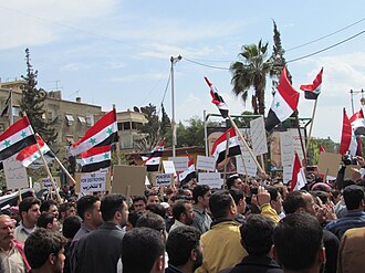 The insurgency grew, fed by support from Qatar, Saudi Arabia, Turkey, the United States, and al-Qaeda.[37] The prevailing opinion among Western and Sunni powers was that the rebels would win relatively quickly and establish a democratic state where everyone is happy.[38][39] Needless to say, that did not happen. As government attacks on pro-rebel civilians increased, psychological trauma led a good many rebels to become Islamists. A good example was the rebel leader, Zahran Alloush calling for a genocide of Shias.[40] Note that he said this after years of daily bombing and shelling of a besieged rebel pocket near Damascus. Many others joined al-Qaeda and Daesh, believing that they were the better fighters.[41] Westerners tried to clean up Alloush's reputation and image to make him "leader of the Syrian opposition" in the Geneva talks aimed at staving off Western boots on the ground in favor of a negotiated diplomatic solution.[42]