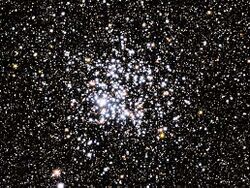Open clusters are key objects in the study of stellar evolution. Because the cluster members are of similar age and chemical composition, their properties (such as distance, age, metallicity, extinction, and velocity) are more easily determined than they are for isolated stars.[1] A number of open clusters, such as the Pleiades, Hyades or the Alpha Persei Cluster are visible with the naked eye. Some others, such as the Double Cluster, are barely perceptible without instruments, while many more can be seen using binoculars or telescopes. The Wild Duck Cluster, M11, is an example.[5]
